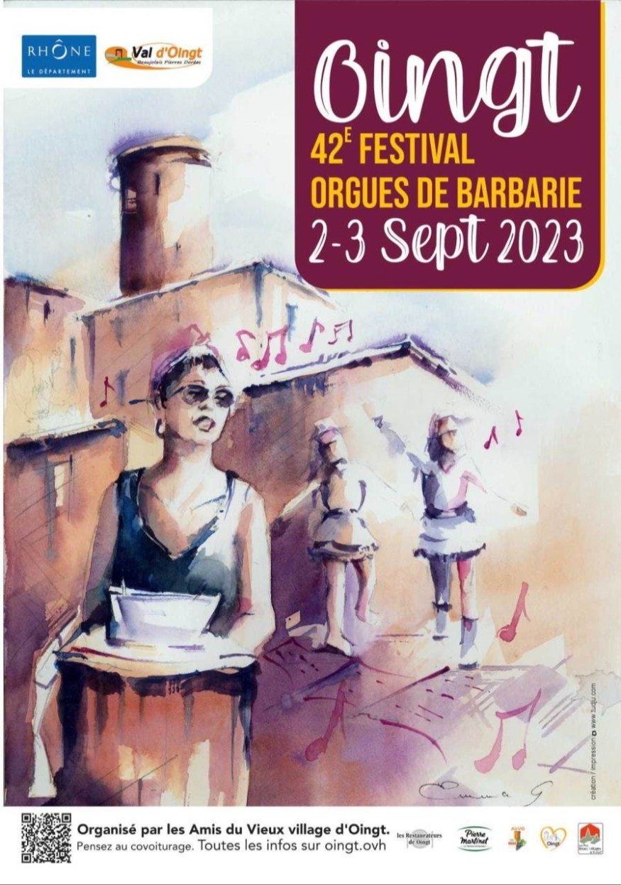 Tous les ans, durant le premier week-end de septembre quand les vignes se parent de raisins, Oingt, petit village au sud du département du Rhône, s'imprègne d'une ambiance particulière. Les artistes et artisans d'art du village sont toujours là mais les vedettes du week-end ce sont les orgues et leurs airs d'autrefois.