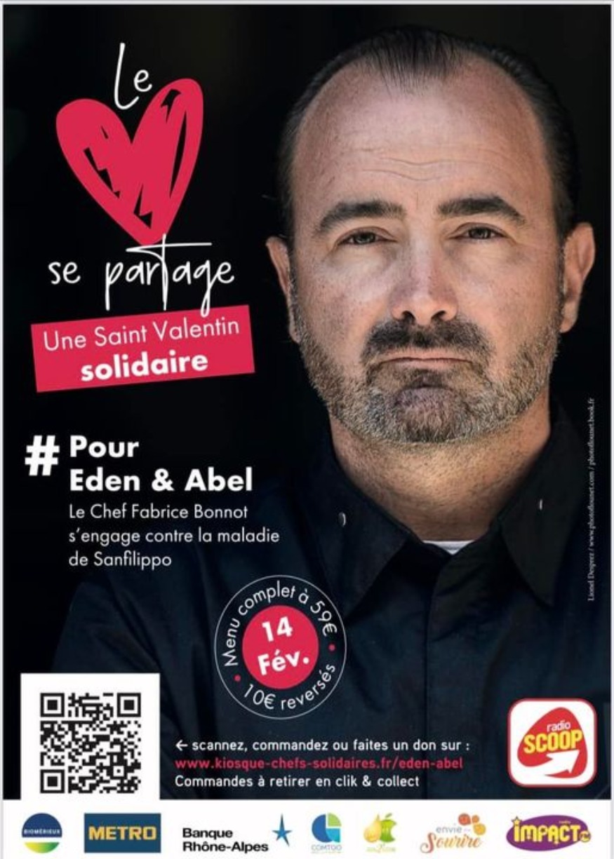 Le 14 février, pour la Journée de l’Amour. Fabrice organise un menu spécial en clic and collect afin de récolter des dons supplémentaires pour aider la recherche de la maladie de sanfilippo .
